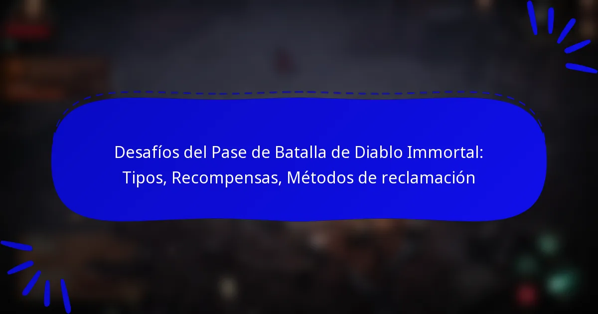 Diablo Immortal presenta varios tipos de desafíos dentro de su sistema de Pase de Batalla, incluyendo desafíos diarios, semanales, estacionales y de eventos especiales. Cada tipo ofrece requisitos y recompensas únicas, permitiendo a los jugadores progresar y ganar objetos valiosos mientras interactúan con el juego.