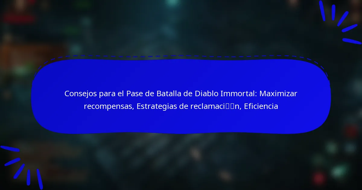 Para maximizar las recompensas del Pase de Batalla en Diablo Immortal, concéntrate en completar tareas de alta recompensa, entender la progresión de niveles y cronometrar tus reclamaciones de recompensas de manera efectiva. Participar en eventos de temporada y colaborar con otros jugadores también puede mejorar tu eficiencia y ganancias generales.