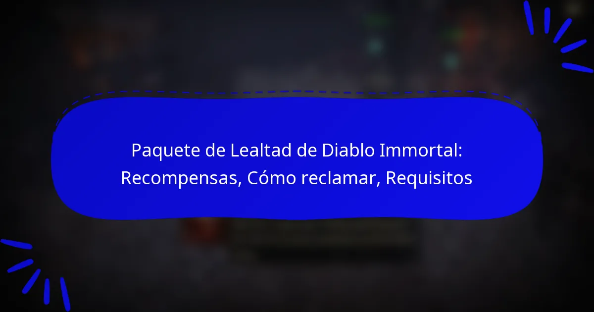 Los jugadores pueden reclamar el Paquete de Lealtad de Diablo Immortal siguiendo un proceso específico dentro del juego. Este paquete ofrece varias recompensas para jugadores leales, mejorando su experiencia de juego.